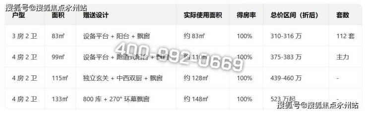 价格:备案均价4.26万/㎡,折后均价约3.87万/㎡,总价310万起(83㎡)