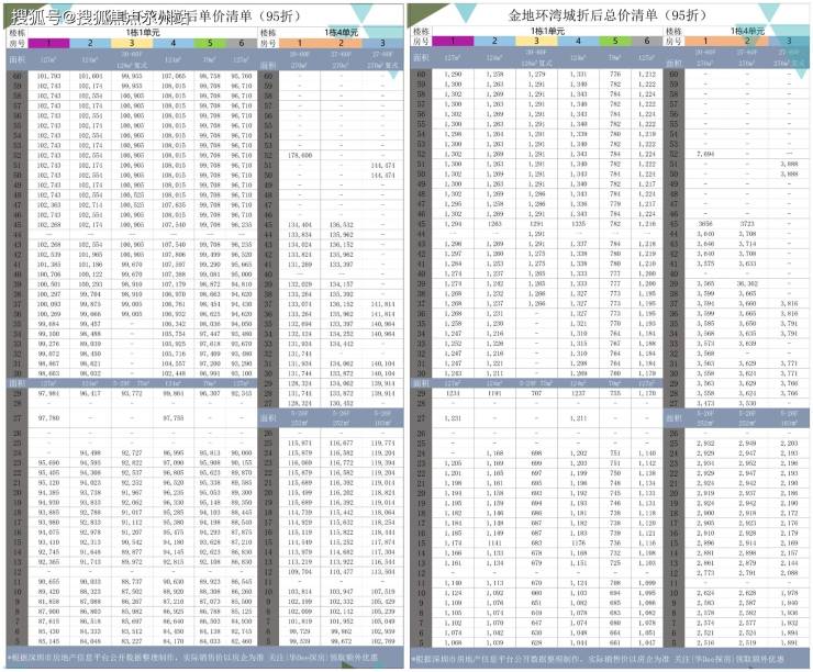 「金地环湾城」折后价清单。需要高清表格的朋友可以预约热线:400-992-0669