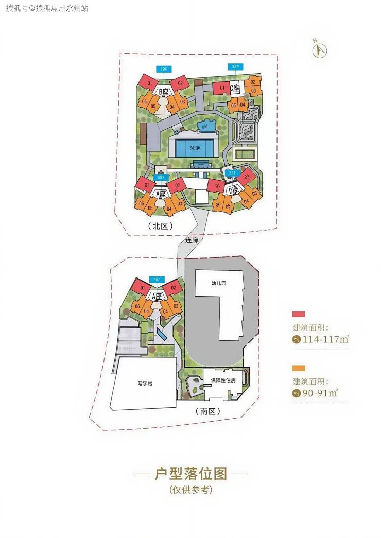 建筑栋数:北区包含1栋4座塔楼,南区包含1栋3座塔楼
