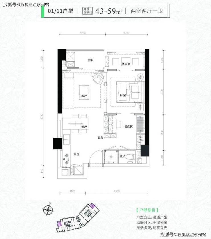 拥有绝佳使用率、建面约42㎡的住宅房源,预计总价要在4字头。几乎都超过100%,其中42㎡的户型更是近130%,以至于不仅做了两房,连次卧都有8个平方。