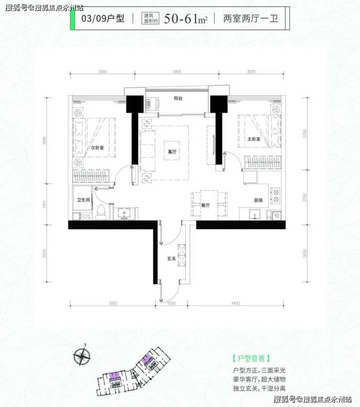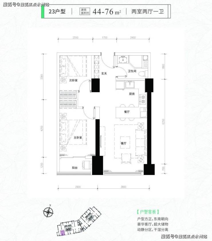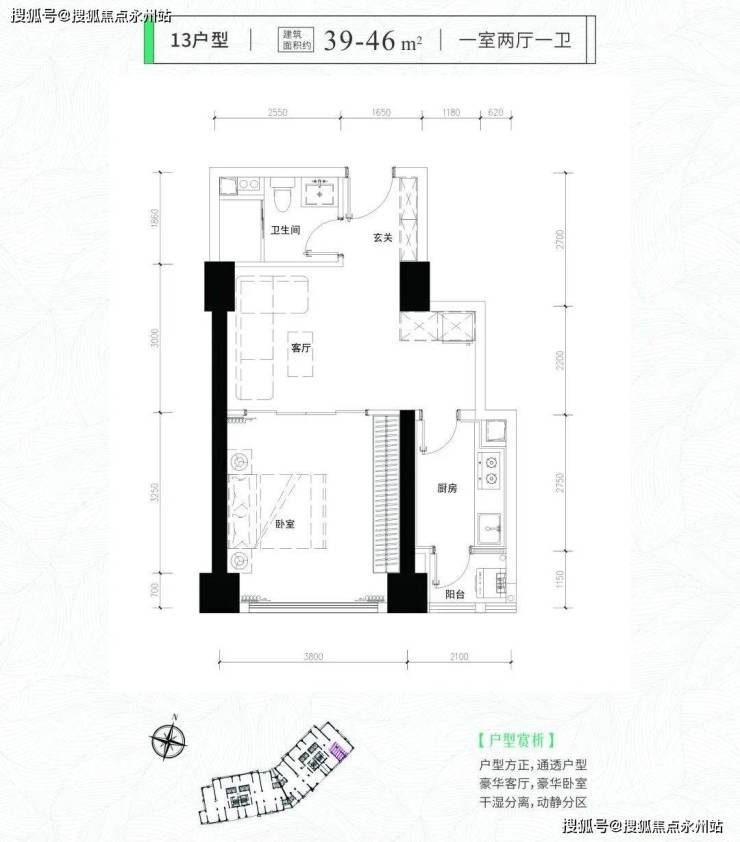 福田即小户型住宅现房——君临天下·君临芯公馆,66套住宅和198套公寓,面积段均为34-76平(一房两厅一卫、两房两厅一卫、三房两厅一卫),使用率高达100%多(每个户型使用率均会有区别)
