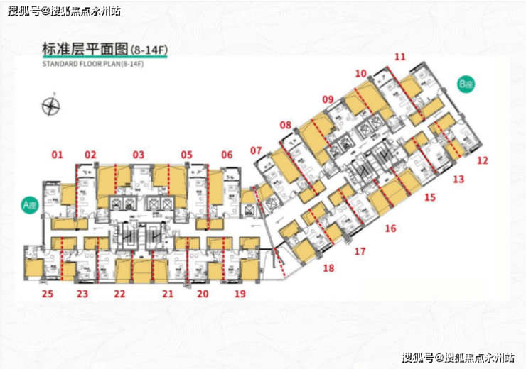 项目位于福田中心区,户型为36-76平1-3房,住宅66套,公寓198套,户型面积都一样,只是产权性质不一样。6-14层为公寓,15-17层为住宅,6梯22户