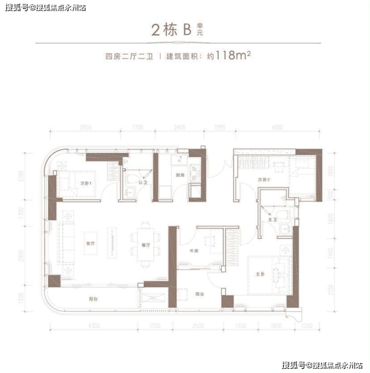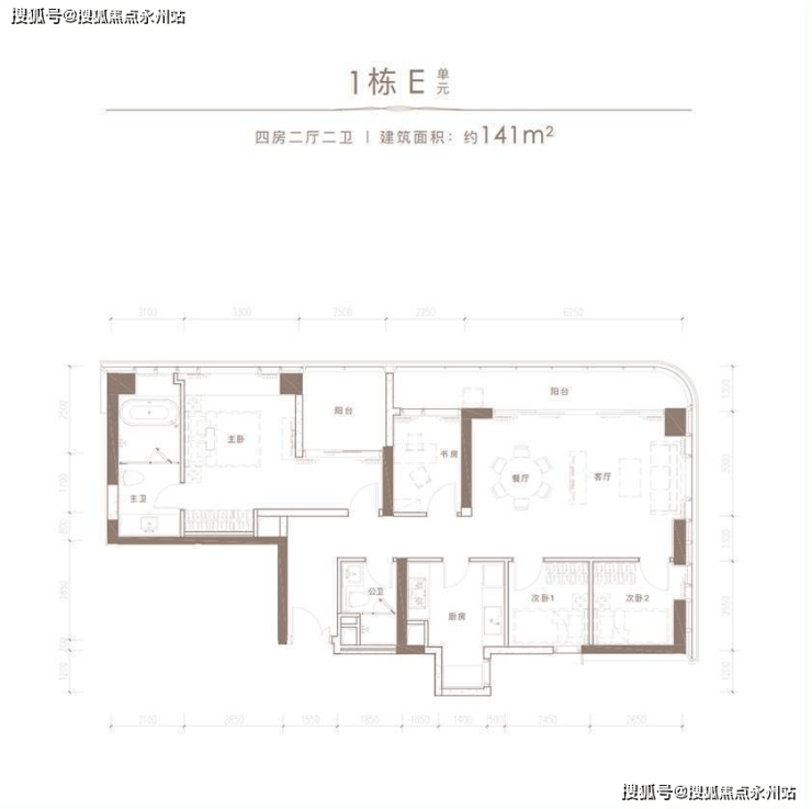 由四栋高低错落的新现代建筑组合而成,占地面积约2万平米,计容地上建筑面积16.59万平米,主力户型建筑面积约70-236平米的2至6房。