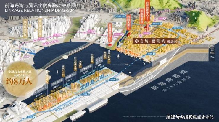 自贸·紫荆屿,坐落于南山区前海合作区梦海大道与港城路交汇处(临近兴海大道),地处前海妈湾板块核心,作为前海三大片区之一,妈湾是前海“立体之城”的核心承载区,由招商局与前海管理局联袂开发,叠加五重国家战略加持,区域发展能级持续跃升,而项目作为片区内稀缺的地铁上盖山海大宅,将率先享受板块发展红利。