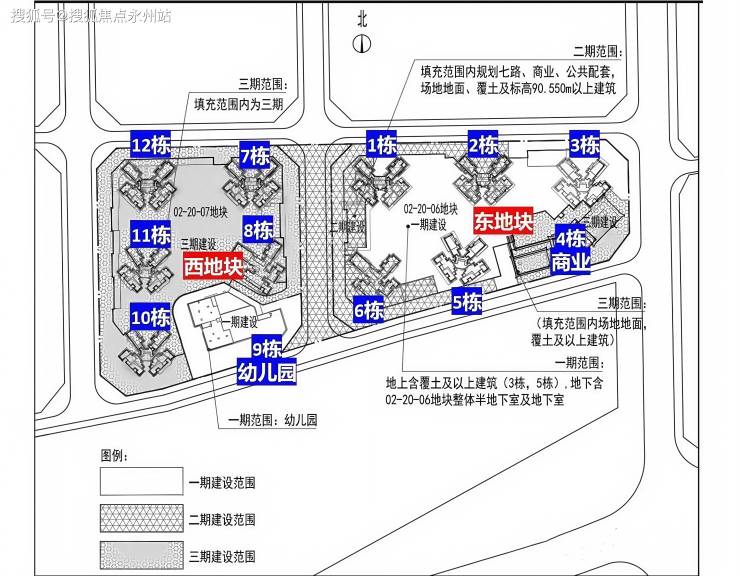 东区:占地约2.1万㎡,容积率5.28,包含住宅、商业、文化活动室、老年人日间照料中心和其他基础配套设施。
