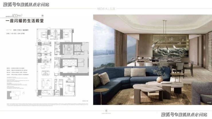 主力户型:402-570㎡宽境大平层,总价区间6000-9000万元,兼顾居住舒适性与社交功能。