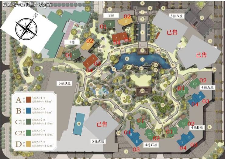 面积:88-143㎡3-4房 车位比:1800个1:1.17
