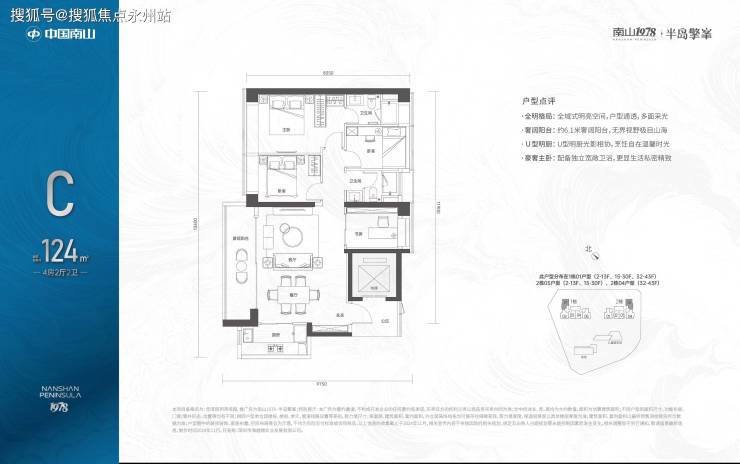 124㎡-4房2厅2卫,折后总价801-965万/套,单价6.5-7.77万/㎡。