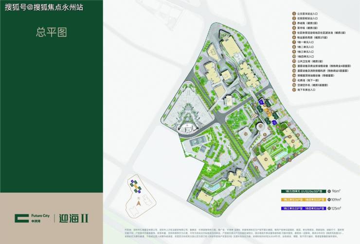 本次产品为96㎡(三房一卫)、109㎡(三房两卫)、125㎡(三房两卫)送精装,本次推出两个单元,楼体朝向东南,远可观海景,近处俯瞰与一期围合成的社区绿地,大部分户型朝向东南,少数户型朝东北,96㎡三房一卫是本次主力户型,预计有372套,109㎡预计95套,125㎡户型93套!