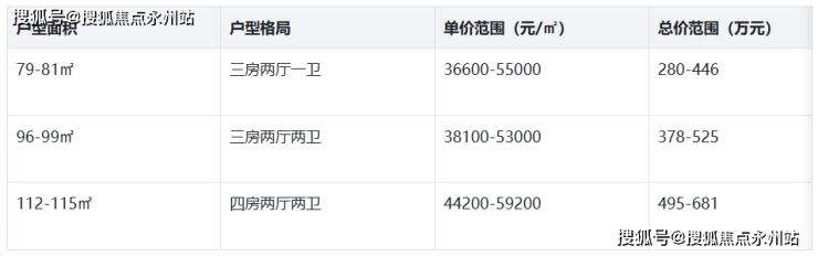 79㎡三房:总价289万-337万,单价3.66万/㎡起