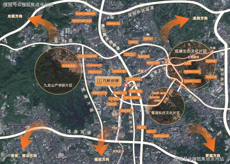 自驾:依托"两纵两横"交通网——梅观高速、观澜大道(双向8车道改建中)、沈海高速、外环高速,30分钟直达福田CBD,1小时通达南山、罗湖核心区。