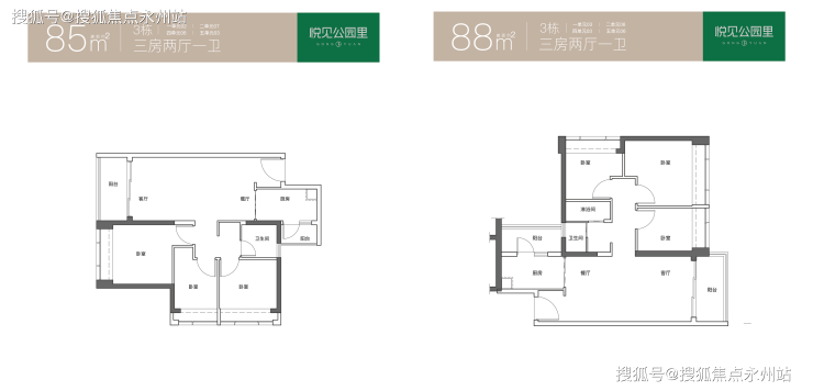 85㎡的3房2厅1卫,折后总价297-319万/套,单价3.49-3.75万/㎡