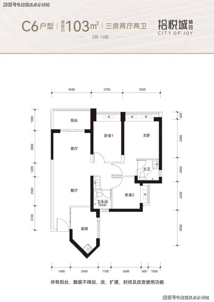 103㎡的3房2厅2卫:设计的竖厅格局,套内面积79.4㎡,得房率77.09%左右,客厅3.4米开间,目前仅B座07户型有,东北朝向