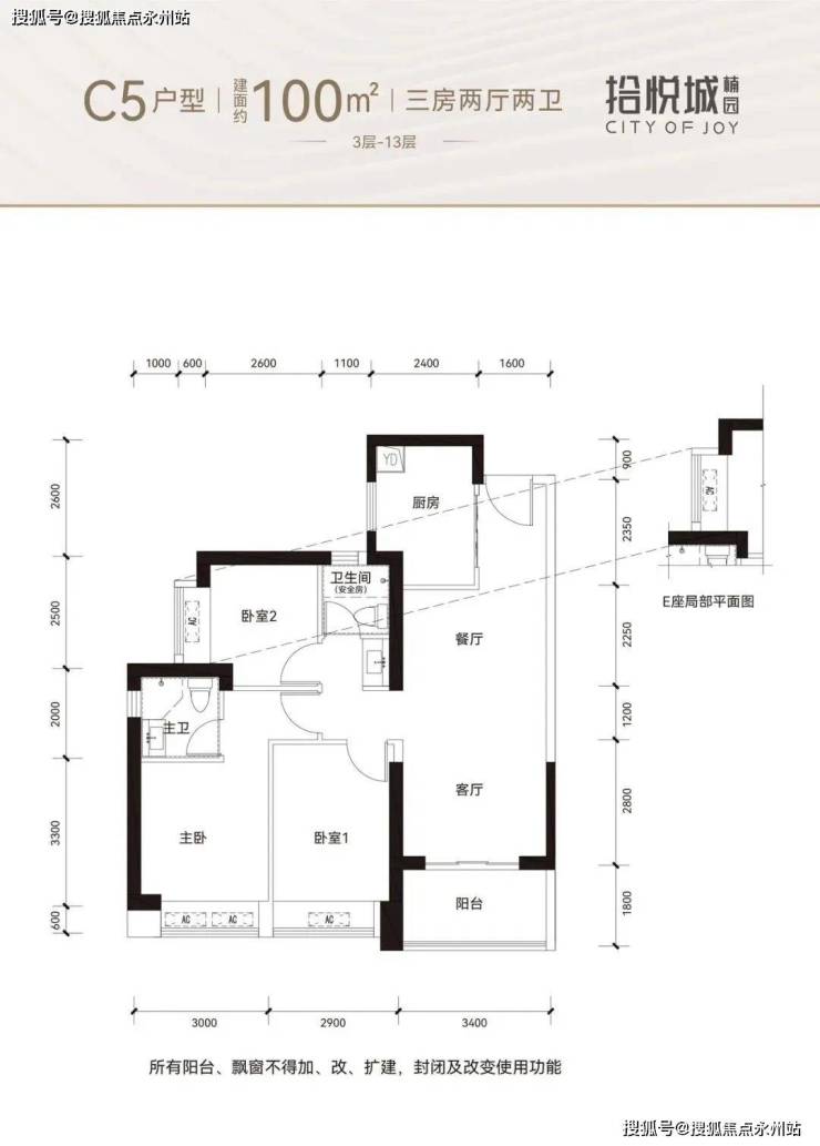 100㎡的3房2厅2卫:设计的竖厅格局,套内面积77.24㎡,得房率77.24%左右,客厅3.4米开间,有西南及东南朝向