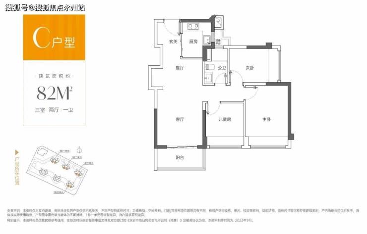 82㎡的3房2厅1卫,设计的是竖厅格局,客厅3.3米开间,S墙体设计预留双开门冰箱位,动静分区,三开间朝南,3个卧室分别做到了主卧11.4㎡/次卧7.65㎡/次卧7.49㎡(实测面积,去掉墙体),得房率:79.77%(不含赠送),L型厨房,阳台进深1.5米,西南或东南朝向。