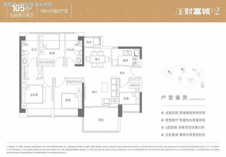 功能:U 型厨房,得房率约88.36%(含赠送),阳台主朝东南、西北、东北。