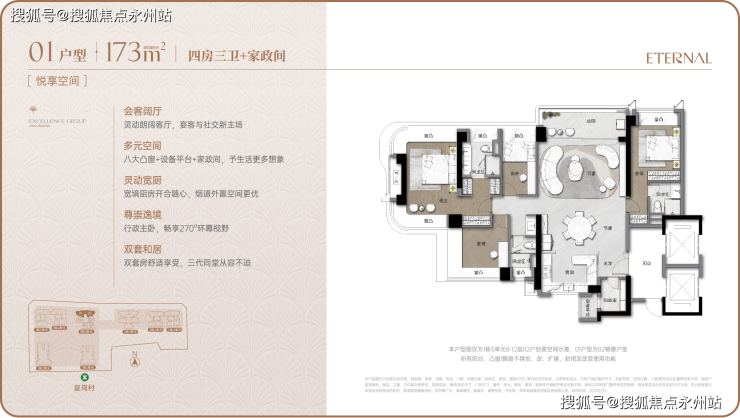 超高使用率:新规设计下所有户型使用率超 90%,部分超 95%,空间价值显著提升。92㎡三房实际使用面积接近传统 100㎡户型,173㎡四房可媲美市场 200㎡大平层。
