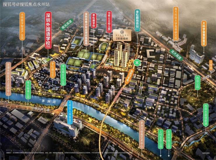 教育:自带18班幼儿园,深圳外国语学校光明学校(九年一贯制公办,直线距离约 600 米),深圳外国语学校高中园。