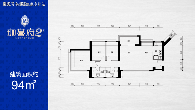 94㎡竖厅:总价443~505万(4.7-5.36万/㎡)