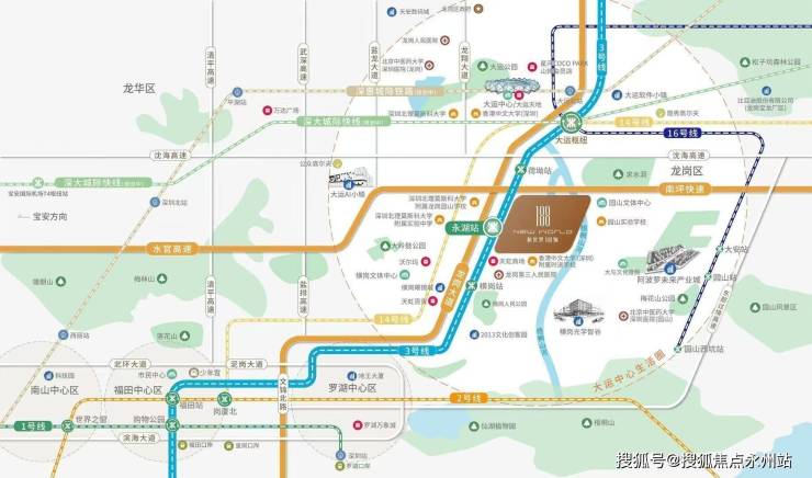 项目交通极为便利,实现地铁、自驾多维出行无缝衔接。紧邻地铁3号线永湖站,距离A口仅约150米,步行3分钟可达;通过地铁3号线2站可到达大运枢纽站,在此可换乘14号线、16号线及深大城际快线,其中14号线7站可抵达布吉,10站到达岗厦北,16号线1站可达大运中心,连接园山街道和阿波罗未来产业园。