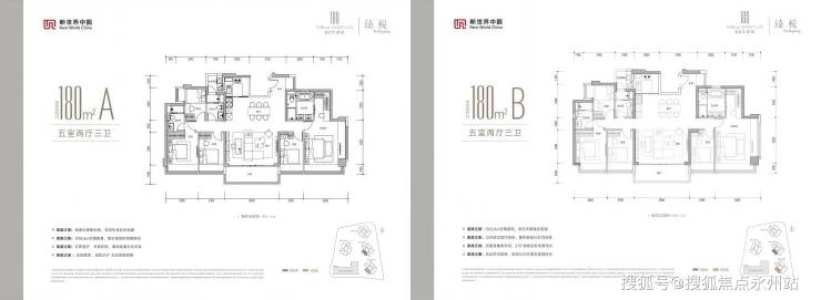 180㎡ 5房3卫:高端改善户型,大平层设计,格局舒展,配备3个卫生间,满足大家庭或高端居住需求,兼顾私密性与居住质感,是区域内高端改善的优质选择。