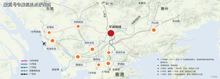 项目地处深圳中心的平湖,被誉为“深圳地理中心”,是整个城市各区域距离和路程最均衡、最便捷的区域。未来,17号线二期“鹅公岭站”将位于项目附近。目前,目前可以去到距离约3公里外的“平湖站”。