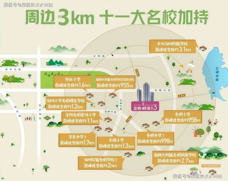 公园:紧邻翠湖公园,一路之隔是光明小镇,步行可至科学公园(已建成)、新城公园、虹桥公园,2公里范围内人均公园绿地达54.18㎡,远超光明区平均水平。