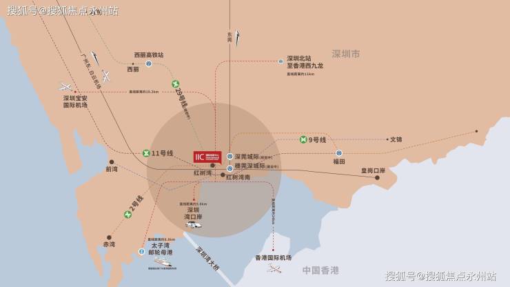 湾区复合枢纽海陆空一站接驳,深圳一个无需换乘,即可轨道直达五大出境口岸的超级枢纽,海陆空立体通达,链接全球,地下交通层可以直接办理值机。