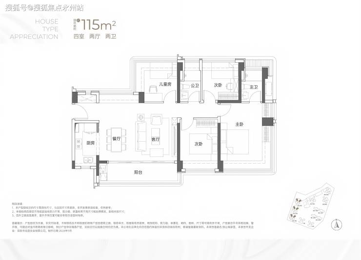 113㎡四房两卫竖厅(03/04户型)传统竖厅格局,客厅连接次卧出6.3米长阳台,主卧与书房飘窗延伸采光,270°观山飘窗为核心亮点,部分房源可无遮挡俯瞰山体。