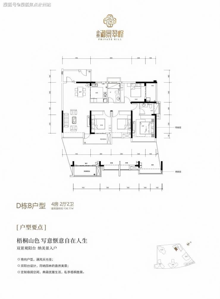136.17㎡(4房2厅2卫):南向双阳台,定制尊阔主卧套房,私享梧桐山景。