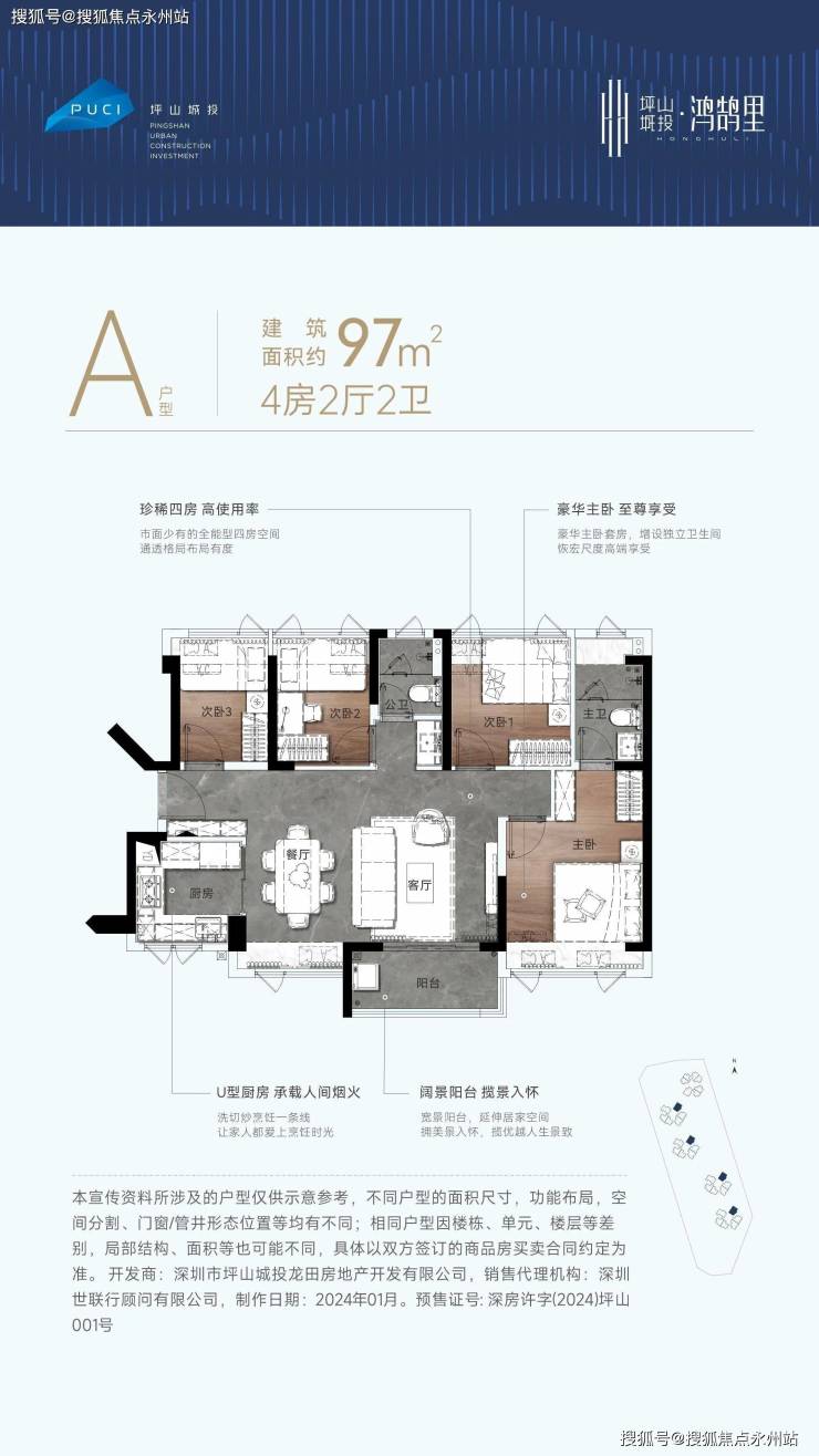 坪山城投鸿鹄里作为坪山燕子湖片区的标杆项目,其户型设计以高得房率、功能实用性和景观资源为核心优势,覆盖73-97㎡三至四房,满足不同家庭结构需求。
