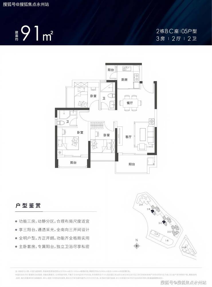 91㎡三房两厅两卫(双阳台设计)