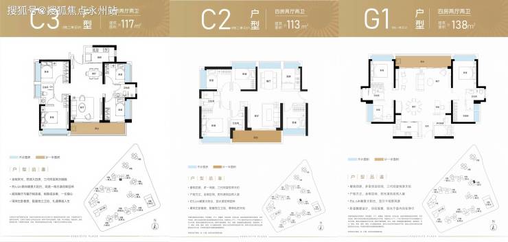 138㎡四房:总价440-460万/套,单价3.19万/㎡起,可改5房设计。