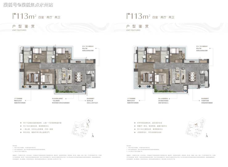 113㎡的4房2卫,南北通户型,总价约829-1019万,单价7.33-9.01万/平。