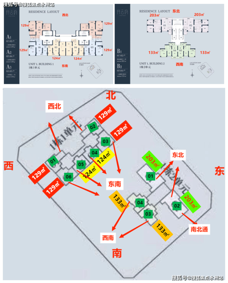 1栋一单元A1、A2户型:面积约为129㎡
