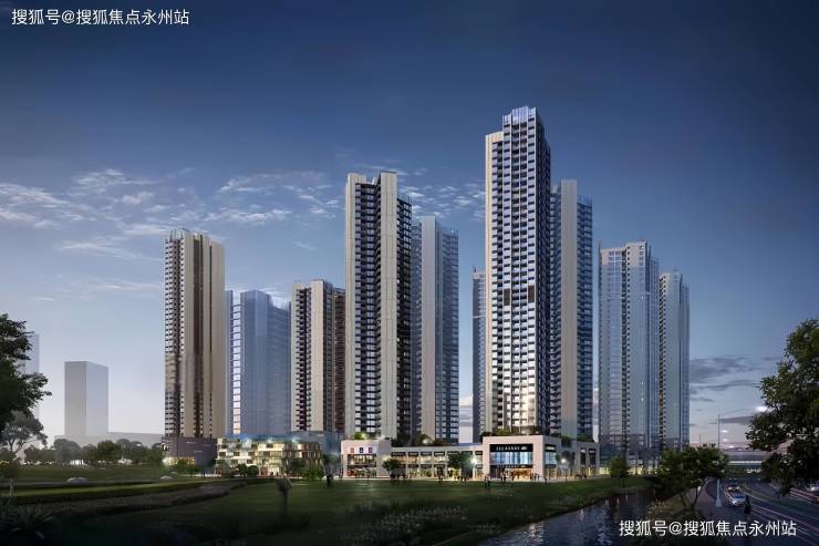项目分为南北两区,规划有4栋38-39层高层住宅、1栋28层办公写字楼、1栋41层保障房,以及1座12班幼儿园,南北区通过廊桥相连。建筑采用大围合式布局,营造出开阔的中央水景空间,泳池位于中心位置,整体风格为国际流行的现代简约风,实现人车分流、商住分离。