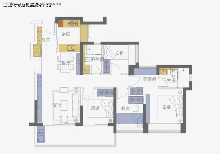 南北通透,通风采光俱佳,餐客厅、阳台一体,轻奢套卧,自带卫浴与衣帽间,更私密舒适,收纳面积超21%,东西再多,全南向四开间,户户无遮挡,约11米面宽。