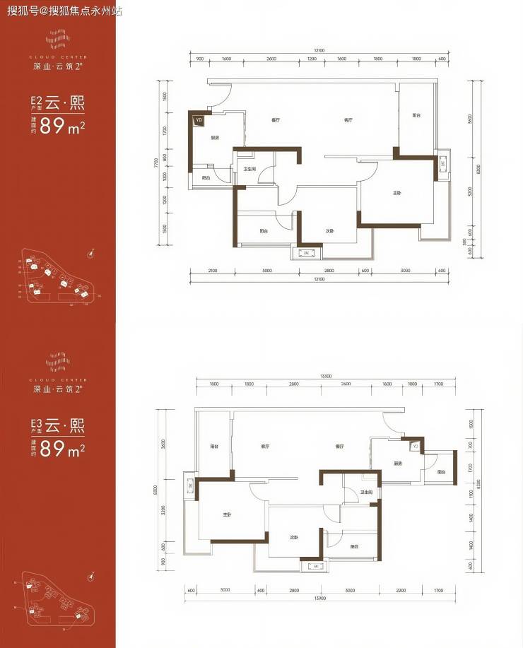 89㎡ | 3 室 2 厅 1 卫:竖厅设计,LDKB 一体化,部分带转角飘窗,总价约 270-357 万。