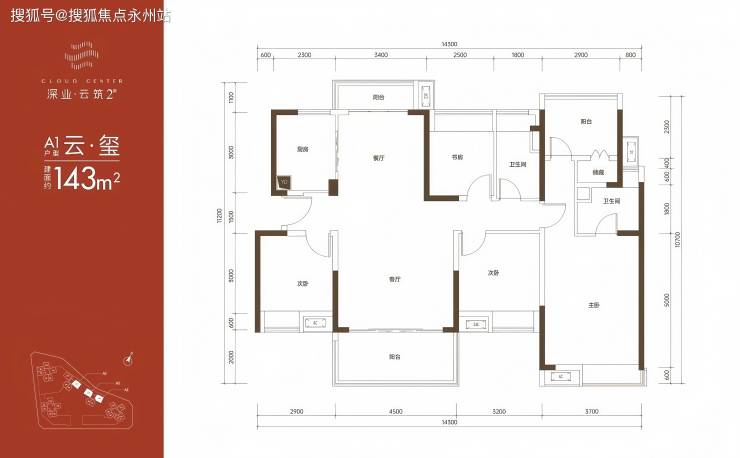 143㎡ | 5 室 2 厅 2 卫:大面宽客厅(4.5 米),5 间卧室,总价约 672 万。