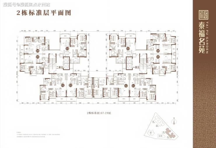 2栋户型7-19层分布图: