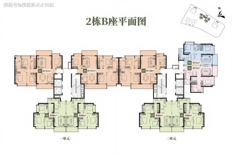 2栋B座一单元01/04户型、二单元01户型:137-138㎡四房两厅两卫(南北通透),仅36套,占比约15%,为社区稀缺改善型产品。