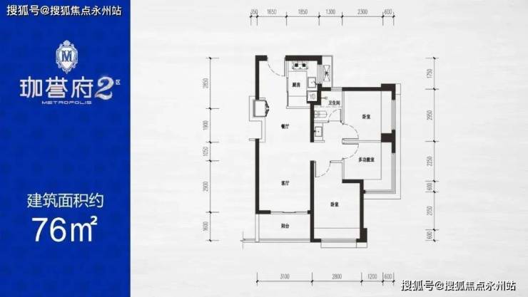 76㎡的3房2厅1卫,设计的是竖厅格局,LDKB一体化,客厅3.1米开间,S墙设计预留冰箱卡槽位,3个卧室分别为2.9/2.8/2.25米的宽度,U型厨房,得房率:77.54%(不含赠送),阳台进深1.6米,东南朝向。