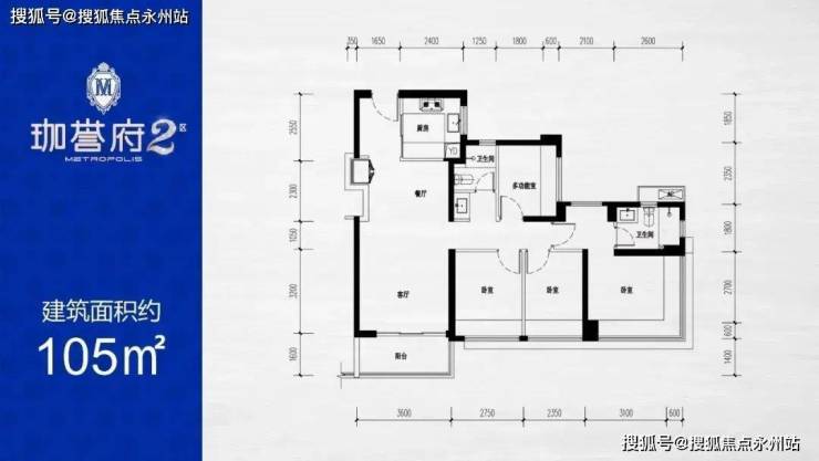 105㎡的4房2厅2卫,设计的是竖厅格局,动静分区,客厅3.6米开间,S墙设计预留冰箱卡槽位,4个卧室分别为3.3/2.75/2.35/2.35米的宽度,主卧270°环幕飘窗视野,U型厨房,阳台进深1.6米,得房率:77.31%(不含赠送),西南或东南朝向看小区花园。