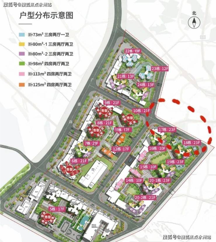 目前的预计价格区间,73㎡的三房一卫的售价在465-520万之间,80-1西北东北视野无遮挡公园景的房型售价为528-620万,80-2东南公园景观房10楼以下的售价为528-600万,10楼以上为580-678万,98㎡的西南花园景的四房售价为720-810万。