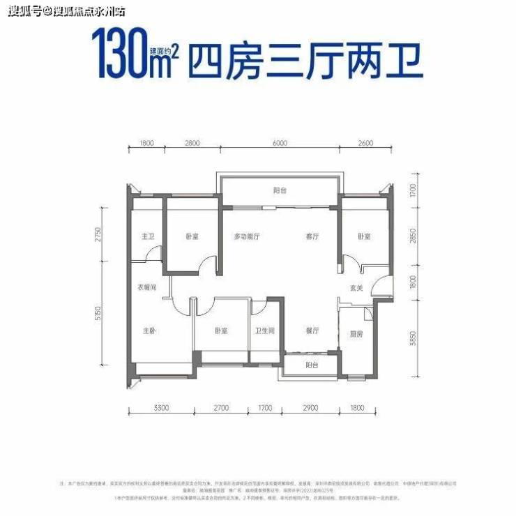 建面约130㎡四房三厅两卫