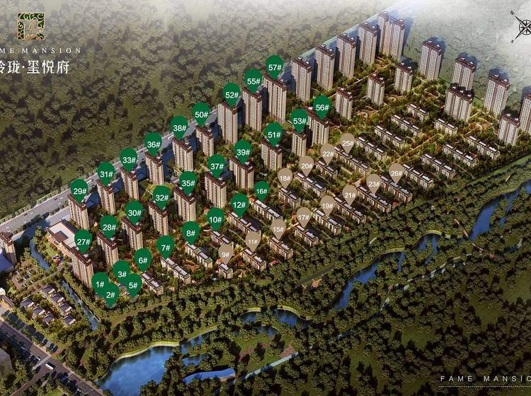 招远首席风水大盘,分2期开发。产品包含别墅、花园洋房,小高层,超高层。本项目顺应地势北高南低,西高东低,依托周边绿化和河流强势生态资源,沿罗峰路布置高层突出都市形象,借助金泉河改造整理,区域整体生态环境和景观环境升级,同时结合本项目的合理规划,充分发挥金泉河整体价值,沿金泉河布置底层多层扩展城市空间,使本项目与市政府倾心打造的金泉河湿地公园融为一体,提升项目整体价值。西侧北侧全部高层布局,东侧多层洋房,整体布局充分考虑招远季风性气候特征,较大化利用金泉河这个城市主风道,温暖湿润的夏季风沿金泉河漫过小区送来清风,阴冷干燥的冬季风被西侧高层阻挡带走寒冷,规划布局能够使所有的住户享受到较佳的日照及景观视线条件。