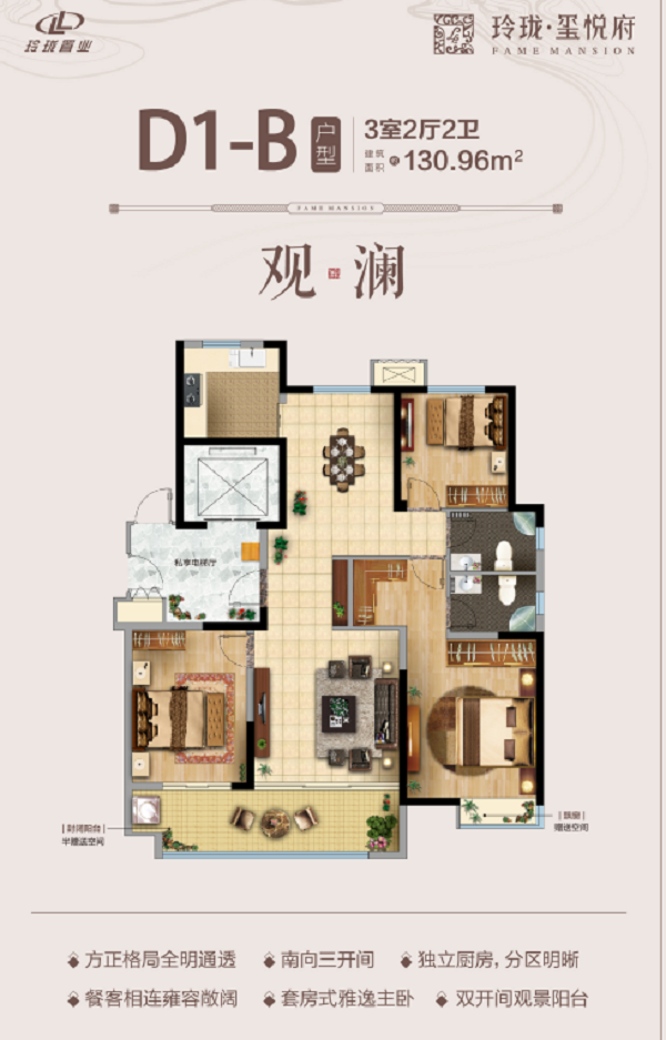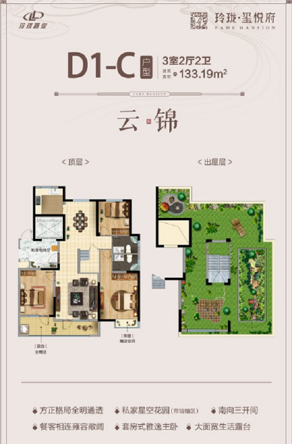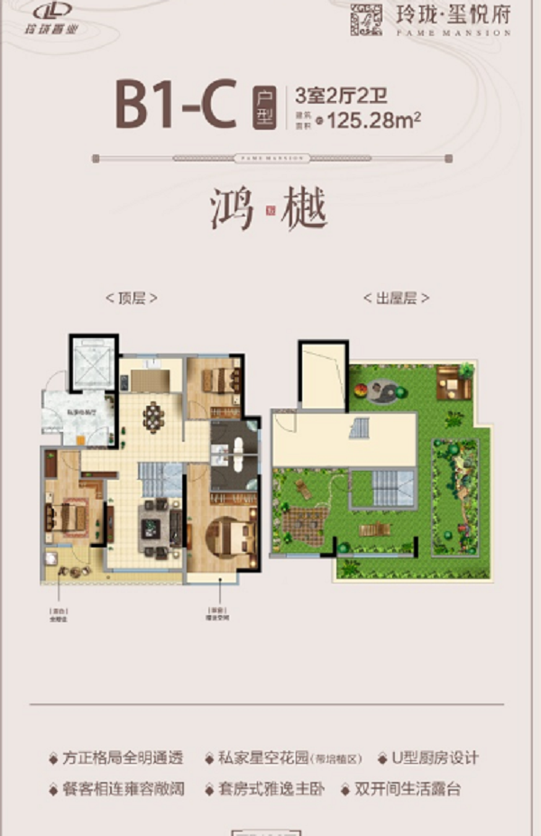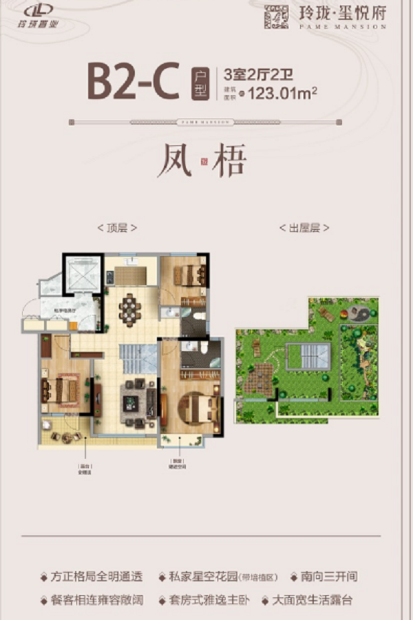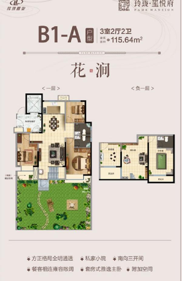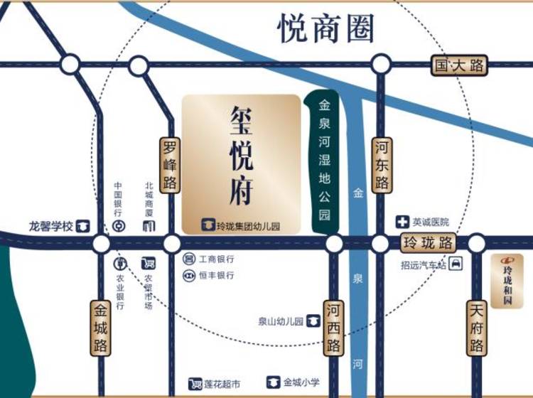 一府、一谷、一湖,三园、四坊、十一巷。以南向玲珑路主要出入口及西侧罗峰路主要人行入口形成南北东西交叉的主要景观轴线,也是园区内部的主要人行路线。串联起凤栖湖、望月园、迎晖园、叠瀑园、尚礼府,以及晴薇坊、醉樱坊、香兰坊、锦棠坊等各具特色内部小组团中心庭院,配合园区内部各种互动空间及慢跑步道,移步换景。