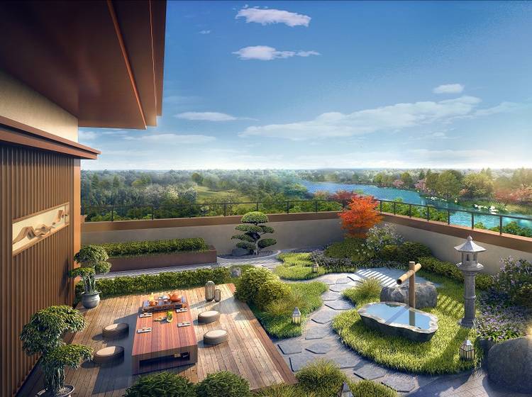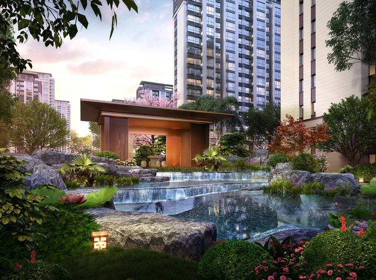 依河双公园,新亚洲景观风格,与建筑风格相匹配,于中式园林景观的基础上兼容现代简约的设计手法,以内敛沉稳的传统文化为出发点,融入现代设计语言,为现代空间注入凝练唯美的中国古典情韵,营造具有浓郁文化氛围的生活场地。