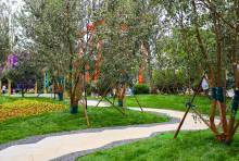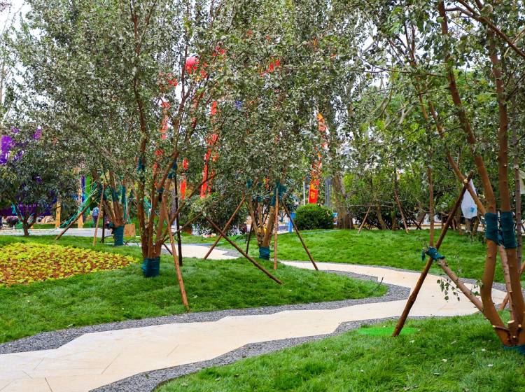 800米带形公园、邻里客厅、复合儿童游乐场、亲子运动场、健身康体区、社区小剧场、宠物管理区