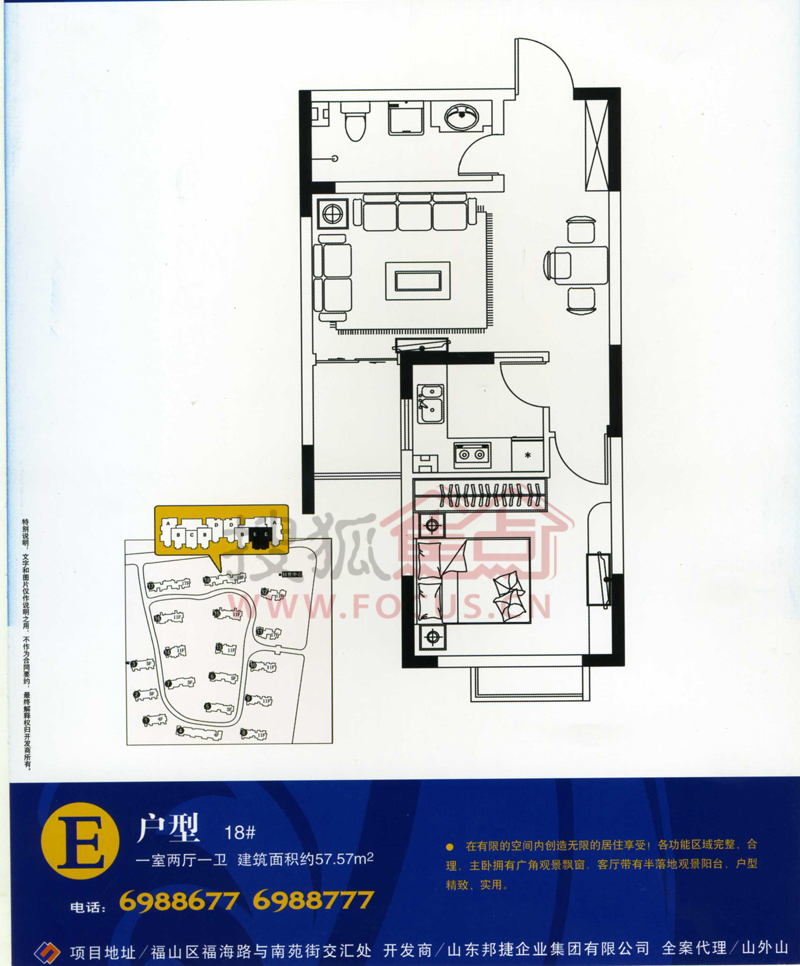 0室-丽景蓝山一室两厅一卫57.57㎡ E
